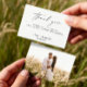 Cartões de agradecimento de casamento simples e clássicos, que você pode personalizar facilmente com sua foto, nomes, data de casamento e mensagem personalizada.