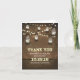 belos cartões de agradecimento de casamento rústico country com jarros de mason pendurados nas luzes de corda