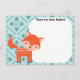 As crianças podem enviar sua própria mensagem de agradecimento com esses cartões de agradecimento de animais da floresta. Use os campos em branco para personalizar facilmente o texto no topo dos cartões. Há espaço para as crianças escreverem a própria mensagem, fazerem um desenho ou ditarem a mensagem de agradecimento para a mamãe ou o papai. Esses cartões apresentam uma raposa vermelha fofa em laranja avermelhado escuro contra um fundo azul xadrez. Esses cartões de painel plano têm uma parte de trás com padrão de zigue-zague em laranja. Esses cartões combinam com outros itens de nossa coleção Woodland Whimsy.