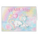 Cartões de agradecimento de unicórnio pastel com adorável unicórnio aquarela em um lindo fundo de arco-íris pastel aquarela. Esses cartões de agradecimento de unicórnio podem ser personalizados com a mensagem impressa aqui, ou você pode deixá-los em branco para sua mensagem manuscrita quando chegarem.