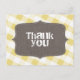 Cartões-postais rústicos inspirados no sul do país com um desenho de "Obrigado" em branco sobre uma textura de tela marrom, em um padrão xadrez amarelo e branco na diagonal. O verso é personalizado com sua própria mensagem de agradecimento. Você também pode excluir facilmente o texto do modelo para deixar o(s) cartão(ões) em branco para escrever à mão seus próprios sentimentos de gratidão. Esses cartões, com seu clássico padrão xadrez, são perfeitos para celebrações de Chás de Bebê e Chás de Noiva ao estilo sulista.