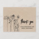 Cartão postal de agradecimento empresarial com flores silvestres desenhadas à mão, fundo Kraft marrom e um modelo de texto. Um cartão postal de agradecimento perfeito para pequenas empresas. Por favor, clique no botão personalizar para personalizá-lo com seu texto. Visite minha loja "loveyouart" para outros ou semelhantes desenhos.