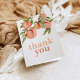 Este design apresenta um ramo pintado de pêssegos doces pendurados em um galho. Junto com uma adorável combinação de fontes modernas e rústicas. Agradeça a seus amigos e familiares por celebrarem o chá de bebê com você! Veja toda a coleção para mais itens correspondentes!