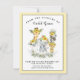 Cartões de agradecimento para chá de bebê de safari de menina com adoráveis animais bebês com girassóis bonitos em um fundo verde e amarelo pontilhado. Esses cartões de agradecimento de bebê com girassóis são facilmente personalizados para o seu evento, basta adicionar seus detalhes.