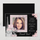 Cartões de agradecimento Paris sweet sixteen com moldura de foto bonita em uma Torre Eiffel rosa e preta e fundo de presente elegante. Você pode adicionar a mensagem de sua escolha e adicionar sua foto para personalizar esses elegantes cartões de agradecimento de Paris.