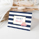 As cartas de agradecimento apresentam um fundo ousado de faixa de marinho, borda falsa dourada e um grupo de peões em tons bonito de pincel. Coordena-se com nosso Marinho Stripe & Blush Peony office supply, produtos de papel, artigos domésticos e acessórios.