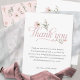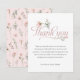 O cartão de agradecimento para chá de bebê Elegant Pink Wildflower Baby Shower Thank You Card é um cartão dobrado A2 lindamente projetado que vem com envelopes, perfeito para expressar gratidão aos seus convidados. Inspirado no charme caprichoso de uma festa de chá da Alice no País das Maravilhas, este cartão apresenta as palavras 'Obrigado' em uma elegante caligrafia clássica, acentuada com uma adorável flor silvestre rosa aquarela que adorna a parte superior da letra. Seu design evoca a atmosfera mágica e encantadora de um chá de bebê, tornando-o uma forma inesquecível de transmitir sua apreciação. Disponível em uma paleta de cores, cada cartão oferece um toque pessoal para seus agradecimentos de chá de bebê, garantindo que sua gratidão seja sentida da maneira mais elegante e sincera.