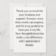 Expresse sua gratidão com um cartão que fala do coração. Projetado cuidadosamente e perfeitamente feito, este cartões de agradecimentos faz com que dizer "obrigado você" se sinta pessoal e significativo. Perfeito por mostrar apreço aos amigos, à família, aos colegas de trabalho ou a qualquer pessoa que tenha feito diferença na sua vida.