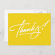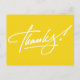 Escrito manual moderno Obrigado Cartões postais em Lemon Yellow. Perfeito para Casamentos, Aniversário, Natal, Chás ou qualquer outra ocasião. Cartões postais de cor amarela limão 'Obrigado', se necessário, escolha qualquer outra cor ou adicione o seu próprio texto impresso, endereço ou nome da empresa na guia "Personalizar".