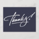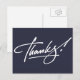 Script manuscrito moderno Obrigado Cartões postais no Marinho Escuro Clássico Azul. Perfeito para Casamentos, Aniversário, Natal, Chás ou qualquer outra ocasião. Marinho Escuro Clássico Cartões postais azuis 'Obrigado', se necessário, escolha qualquer outra cor ou adicione seu próprio texto impresso, endereço ou nome da empresa na guia "Personalizar".