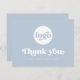 Cartões de agradecimentos comercial com o texto "Obrigado" em uma fonte com estilo retroativo. Texto branco (ou cor personalizada) em um fundo azul empoeirado. Carregue seu logotipo na frente e adicione texto personalizado na parte traseira. Você pode alterar cores, mover e redimensionar elementos com a ferramenta design.