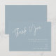 Este é o modelo de Cartões de agradecimentos minimalista. O fundo azul empoeirado com a escrita moderna parece elegante e elegante e será excelente para qualquer Partido Bridal.