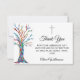Este Cartões de agradecimentos do Batismo na moda apresenta uma árvore da design nas cores do arco-íris e uma cruz. Facilmente personalizável com o nome e a mensagem. Este design único é um impressão de um mosaico que foi feito de pequenos pedaços de vidro de cor clara. Porque nós criamos a nossa trabalho de arte, você não encontrará esta imagem exata de outros designers. Mosaico original © Michele Davies.