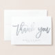 Folha de prata real e casamento preto Obrigado Cartões (horizontais) com texto alterável, impressos em fundo branco, com envelope branco
