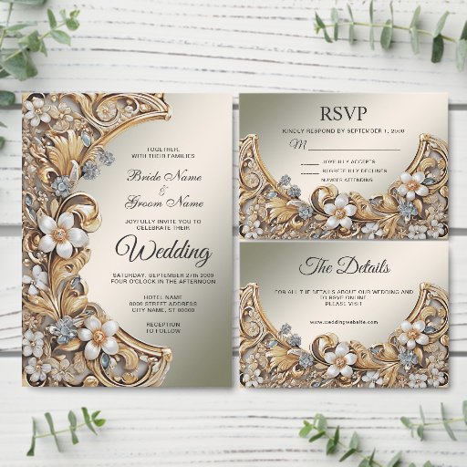 Belo Cartões de agradecimentos Dourado e Decorativo Branco Floral