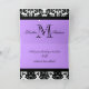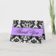Obrigado preto e branco do casamento tema damasco você cartões com nomes do monograma e dos noivos e cor de acento roxa. Personalize no interior com sua informação e obrigado texto usando os alertas OU clique sobre "personalizam" o botão para mais opções de edição. Disposição e design por Elke Clarke ©2010. Cor damasco licenciada para o uso comercial. Nenhuma duplicação permitida.
