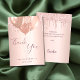 Um cartões de agradecimentos para um doce 16, 16 anos. Uma cor metálica de fundo rosa dourada falsa. Com brilho sujo, pintura pingando aparência e balões. Na frente, um grande e escuro, rosa dourado, escrita à mão, colorida, e o texto: Obrigado, seu texto, título e uma data. Back: Modelo para sua nota de agradecimento e seu nome.