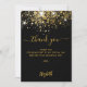 Um fundo preto, brilho de ouro falso decorado, brilhos. Escrito escrito em grande mão e texto: Obrigado. Personalize e adicione sua nota de agradecimento e seu nome.
