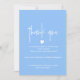 Um cartões de agradecimentos moderno minimalista em azul suave com uma fonte chic. Este design tem um design de caligrafia fresco e limpo, que é perfeito para muitas ocasiões, inclusive depois de um chá para bebês. Um olhar desordenado e limpo para os pais modernos. Recortar e colar estes links do Zazzle para um convite correspondente https://bit.ly/3pQtr9b e aqui para um cartão de solicitação de livro correspondente https://bit.ly/3gjHLnu