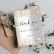 Um cartões de agradecimentos para um Chá de panela. Um fundo metálico falso prateado. Com pó de ouro sujo. Na frente, o texto com letras grandes e o texto: Obrigado, seu texto, título e uma data. Voltar: Personalize e adicione seu nome e nota de agradecimento.