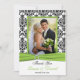 Estes cartões de agradecimentos preto e branco da foto do damasco com a fita e as jóias do FALSO do verde limão combinam o convite do casamento mostrado abaixo. Há igualmente uns cartões de agradecimentos do estilo do cartão, se você prefere aquele. O texto e o tipo de papel são toda customizáveis. Se você exige quaisquer outros artigos de harmonização, envie por correio electrónico por favor seu pedido a niteowlstudio@gmail.com.