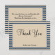 Este "Cartões de agradecimentos de imagens clássico de faixas azuis" foi projetado para deixar uma impressão duradoura sobre seus entes queridos enquanto você mostra sua apreciação pela presença e gestos pensativos deles. O design limpo pode ser usado para qualquer ocasião, seja para agradecer aos convidados por estarem presentes no seu casamento, chá, ou qualquer outro evento especial, estas cartas oferecem uma maneira versátil e na moda para o fazer. Peça hoje!