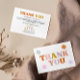 Eleve sua marca incluindo um cartões de agradecimentos de inserção de encapsulamento com seus pedidos e mantenha-os voltando repetidamente - pequenos detalhes importam! Atrair clientes repetidos dizendo que você está obrigado e oferecendo um código de desconto. Perfeito para qualquer empresa, grande ou pequena, mas especialmente para aqueles que apreciam design simples mas brincalhão. O modelo de cartões de agradecimentos comercial é fácil de usar e é completamente personalizável com o Zazzle com controle de cheio sobre cores e fontes.