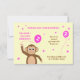 Este cartões de agradecimentos de segundo aniversário coordena-se com o cartão de convite na coleção "segundo aniversário Macaco Cheeky". Mostra um macaco sorridente segurando um balão de segundo aniversário rosa. "OBRIGADO POR VIR!" Todo o texto é editável. O fundo do cartão é creme, e há algumas estrelas rosas e brancas dispersas. No verso, há um padrão de bolinhas cor-de-rosa com uma estrela solteiro no centro.