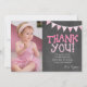Cartões de agradecimentos cor-de-rosa do aniversário das bolinhas - cartões de agradecimentos do quadro do primeiro aniversario