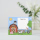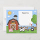 Personalize cartões de agradecimentos da festa de aniversário dos animais de fazenda desta criança. Convites de harmonização abaixo. Alguns elementos pela licença #41088 de www.nitwitcollections.com. Caracteriza um celeiro vermelho com galinhas, um porco e uma vaca bonito.