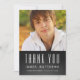 CARTÕES DE AGRADECIMENTOS DA GRADUAÇÃO DO FORMANDO %PIPE% DO QUADRO COM A FOTO DO FORMANDO COM TIPOGRAFIA RETRO BRANCA E FUNDO PRETO DO QUADRO PARA SEU FILHO. Elke Clarke© para MonogramGallery em Zazzle. Um divertimento, um design corajoso, moderno para um segundo grau de graduação do menino adolescente ou um formando da faculdade. Outros cores e estilos disponíveis em nossa loja.
