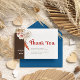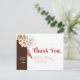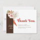 Um elegante design de cartões de agradecimentos de casamento com uma mistura de lindas flores de safari do deserto de verão com tipografia vermelho-coral e castanho-escuro.
