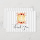 Design de cartões de agradecimentos de casamento da âncora náutica com fundo de padrão de ouro e listras com detalhes florais de cor d'água.
