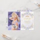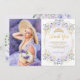 Apresentando uma elegante composição de camada de lavanda adornada com uma bonito tiara, flores roxas pastel e verde. Clique no botão "personalizar mais" se quiser reorganizar e formatar o estilo e a posição do texto. Vem com uma faixa cor-de-rosa e dourada correspondente na parte de trás.