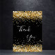Um cartões de agradecimentos de aniversário feminino e elegante. Uma cor preta de fundo. Com um confete de ouro falso. Na frente, o texto escrito em letras grandes e o texto: Obrigado. Voltar: Personalize e adicione seu nome e nota de agradecimento. O nome é escrito com um moderno estilo escrito à mão com traços. Para manter as hastes, exclua apenas o nome da amostra, deixe os espaços ou emoji na frente e depois do nome.