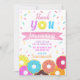 Este Cartões de agradecimentos de Aniversário Doce de Uma Rosquinha tem um design frontal e traseiro. Seu pequeno vai adorar este Convite Rosquinha! Use esta Modelo de rosquinha para personalizar para a festa de aniversário temática de rosquinha da sua pequena.