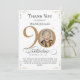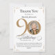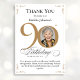 Cartões de agradecimentos de Aniversário do 90 de Foto Personalizado Dourado. Um cartões de agradecimentos especial de celebração de aniversário, elegantemente projetado, com uma foto personalizada de pessoa de aniversário e caligrafia de script com elementos florescentes de vintage. Simples o suficiente para ajustado de uma variedade de temas e cores! Precisa de ajuda com o modelo? Basta entrar em contato comigo!