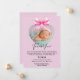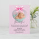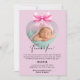 Este cartões de agradecimentos doce e elegante de menina apresenta um fundo cor-de-rosa pastel, um arco ao estilo aquarela e uma foto-frame em forma de coração para mostrar a foto de seu recém-nascido. Perfeito por anunciar a chegada do seu pequeno e expressar sua sincera gratidão aos amigos e à família.