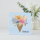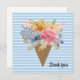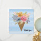 Um cartões de agradecimentos delicioso com buquê floral de cor d'água em um fundo listrado de cor azul e branca. Perfeito por expressar sua sincera gratidão aos amigos, à família ou aos colegas de trabalho, este design combina florais vibrantes com um toque moderno e lúdico. Ideal para amantes de flores e para quem aprecia designs artísticos e únicos