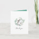 Este cartões de agradecimentos bonitinho apresenta uma réplica da minha mão original pintada de aquarela de um coelho coelho cercado por uma coroa de louros de verde botânico e uma flor azul empoeirada em um fundo branco nítido. As palavras "Obrigado" são definidas numa tipografia moderna de escrita de pincel. O dentro apresenta uma cor verde turquesa sólida com a sua saudação personalizada em branco. Use os campos modelo para personalizar com seus nomes ou o que você quiser. Selecione várias quantidades para solicitar as placas de Páscoa de primavera em massa e salvar. Para ver o chá de fraldas correspondente www.zazzle.com/dotellabelle Art e design por Victoria Grigaliunas