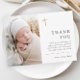 Orçamento Moderno e Minimalista Cartões de agradecimentos de batismo Dourado com simples tipografia e fotografia. Clique no botão editar para personalizar este design com seus detalhes.