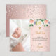 Um cartões de agradecimentos de batismo moderno e elegante. Um fundo metálico de aspecto fino, rosa, cinzento e fino, decorado com flores de ouro, branco, cor-de-rosa-pincel, rosa e diamantes falsos. Personalize e adicione sua foto da criança, obrigado nota e nome.