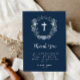 design azul-floral, azul e branco, batismo fotográfico personalizado e cartões de agradecimentos batizante. O texto e as cores podem ser editados.