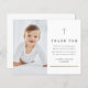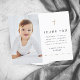 Cartões de agradecimentos Dourado de Foto Batismo Cruzado de Orçamento com mínima cruz de folha de ouro. Clique no botão editar para personalizar este design com seus detalhes.