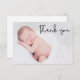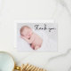 Personalizado com a foto do bebê na frente e mensagem especial na parte de trás. Este design usa uma fonte elegante desenhada à mão para um toque de sofisticação. Expresse a sua gratidão a todos que atenderam ao batismo do seu filho.