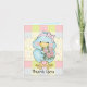 cartões de agradecimentos pastel bonito, com uma bonito colcha colorida como padrão, na frente da placa, e gráficos de um pintinho azul giro segurando flores. Personalize o dentro de texto e saia para atender às suas necessidades. Excelente para o seu obrigado especial que está depois de receber presentes para bebês.