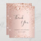 Um cartões de agradecimentos para um aniversário de 50 anos (ou qualquer idade). Um fundo metálico falso de rosa dourado, decorado com poeira falsa. À frente, um grande texto escrito à mão e o texto: Obrigado, seu texto, título e uma data. Back: Modelo para sua nota de agradecimento e seu nome.