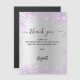 Um fundo com aparência de prata falsa, brilho violeta decorado, brilhos. Escrito escrito em grande mão e texto: Obrigado. Personalize e adicione sua nota de agradecimento e seu nome.