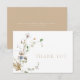 Delicar cartões de agradecimentos de flor silvestre a aquarela com letra de caligrafia cônica e um lado inverso de cor castanha.