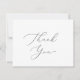 Este delicado cartões de agradecimentos de caligrafia prateada é perfeito para um casamento moderno. A design romântica minimalista apresenta uma magnífica e elegante tipografia de cinza prateada num fundo branco com um aspecto simples e limpo. Personalize a parte traseira do cartão com seus nomes e uma mensagem de obrigado. Como alternativa, deixe o vazio da seção modelo da mensagem do obrigado para escrever uma nota personalizada em cada cartão após a sua chegada. Essas cartas podem ser usadas para um casamento, chá de panela ou qualquer evento especial.